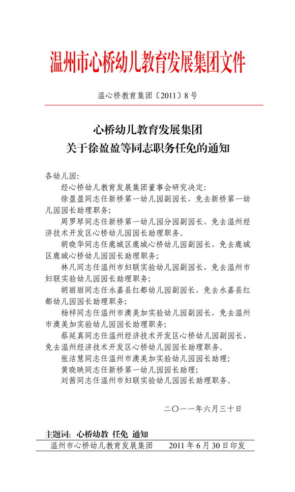 关于徐盈盈等同志职务任免的通知 发表时间:2011/7/4 12:12:36