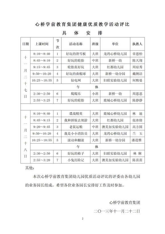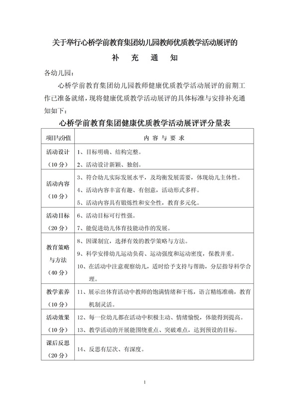 关于举行心桥学前教育集团幼儿园教师优质教学活动展评的补充通知 发表时间:2013/11/22 16:35:35