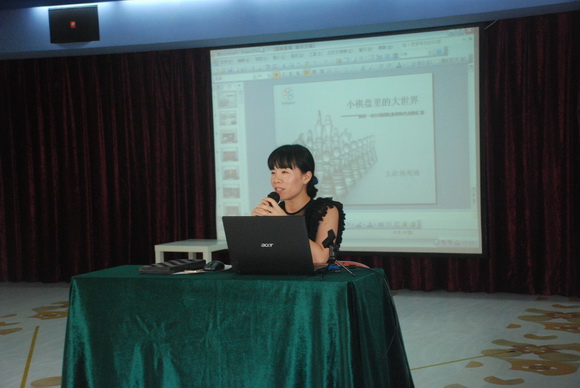 议程二是由陈园长作“小棋盘里的大世界”——新桥一幼分园国际象棋特色创建汇报。在汇报中,陈园长讲到:国际象棋是一项非常有益的智力活动,它风靡于世界。教育的目的之一是培养孩子们的能力。幼儿的一般能力主要是在活动中反映出来的认识能力,包括观察力、记忆力、想象力、思维力等。幼儿在学习国际象棋的过程中,无疑会得到各种能力的培养,学习国际象棋是开发幼儿智慧的一把金钥匙。1997年9月,我园开始将国际象棋活动引入课堂教学,迄今已历时18年。我们把国际象棋教学与幼儿的学习、生活和游戏融合为一体,给孩子们带来了无穷的快乐,启迪了灵性、增长了智慧、促进了孩子的全面发展。我园的探索已初见成效。教师在省、市、区各层面上的国际象棋公开课,受到了普遍好评,幼儿曾参加全国、省、市、区各类比赛并荣获团体及个人的冠军、亚军、季军的好名次。