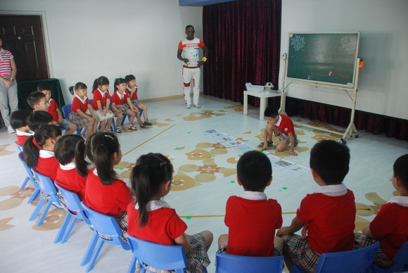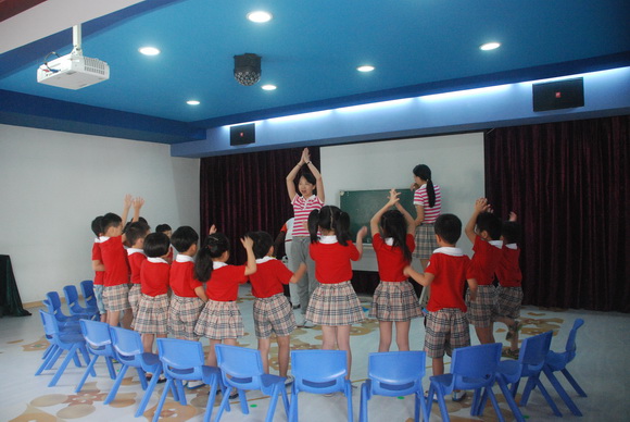 幼儿英语教学是我集团的教学特色之一,在今天下午的活动上,首先我们的外教Morris和助教Cindy给大家带来了一场活泼生动的英语活动,小朋友们在快乐的歌声中开始了这节活动,全英语的问答让家长们是又佩服又羡慕,之后的单词卡片的复习让我们见识到了平时小朋友们扎实的功底,最后的一个游戏将整节活动推向了高潮,小朋友玩得不亦乐乎。就这样,小朋友在边玩边学的全英语的良好氛围中结束了这节活动,家长们也纷纷投来赞许的眼神。活动结束,我们的英语助教Cindy老师和家长们分享了孩子学习英语的好处和孩子们学习英语的收获。