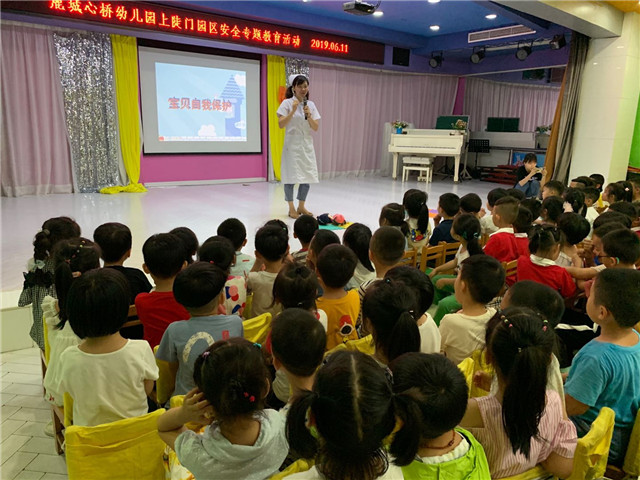 2019年6月11日,鹿城心桥幼儿园上陡门园区在多功能厅开展了幼儿“安全教育之卫生安全教育”主题教育活动。本次活动特别邀请了中一班在医院工作的刘林萱妈妈为幼儿讲解卫生安全小知识,活动形式多样丰富。首先运用多媒体工具让幼儿通过图片知道自己从哪里来,了解受精卵的形成以及孕育的过程并且邀请幼儿上台亲身体验在妈妈肚子里感受,激发幼儿学习的兴趣。接下来通过案例分析、现场讨论让幼儿知道自己的性别、知道自己的隐私部位,并且学会保护自己的隐私部位除了自己的爸爸妈妈爷爷奶奶其他人是不可以触摸的。医生检查身体时都需要在爸爸妈妈陪同下,才能看到自己的私密部位。通过这次的全教育,幼儿对“隐私部位”有了新的理解和认知,提高了幼儿的防侵害意识,让幼儿在生活中更好的保护自己!