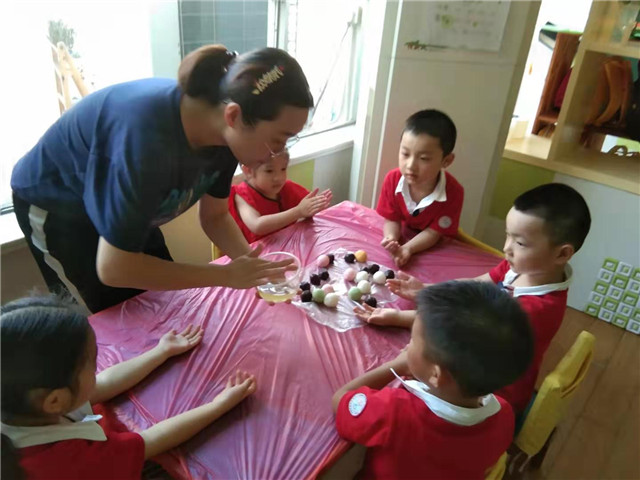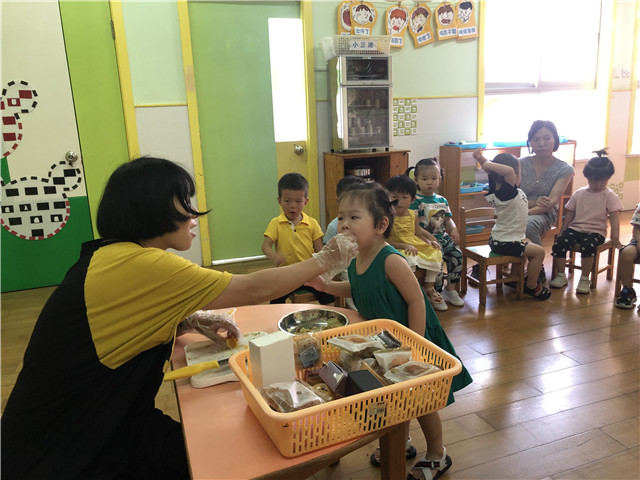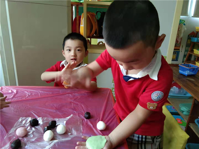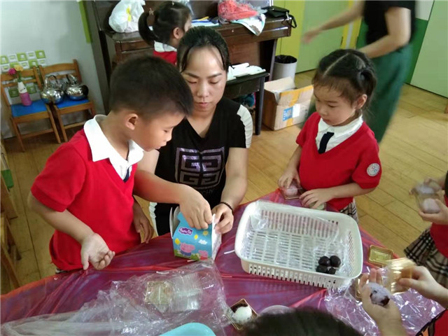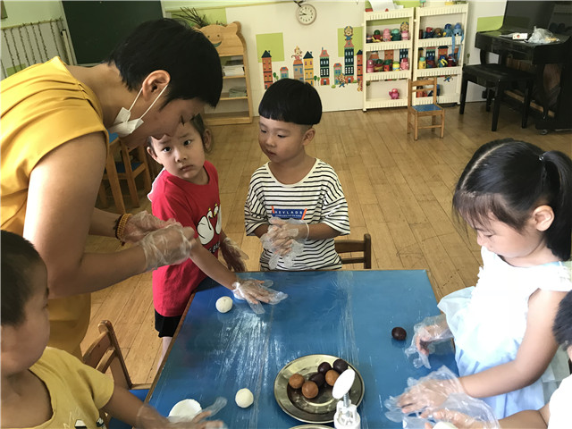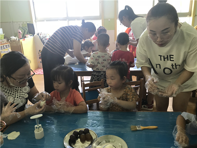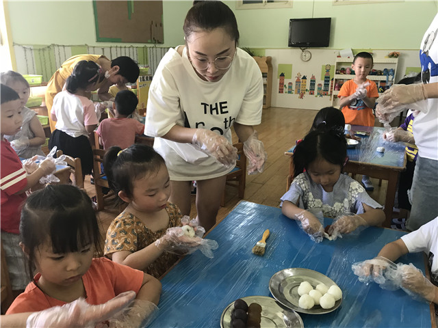 活动中,各年段还用不一样的活动形式来进行,开展了一系列的庆祝活动:托小班开展的“庆中秋”活动,主要针对新入园的幼儿焦虑情绪以“快乐”为中心点,唱着中秋节的儿歌,一起品尝月饼,让幼儿体验幼儿园这个大家庭的团圆与快乐,激发幼儿乐意上幼儿园的美好情感。中班的小哥哥小姐姐们自己都动手制作冰皮月饼,感受节日气氛,提着自己制作的冰皮月饼,心里特别的开心。“爷爷为我打月饼呀。。。。。。。”大三班传来一阵阵快乐的笑声和歌声。原来是孩子、老师欢聚一堂,共同庆祝中秋佳节的到来。这是大班小朋友最后一次在幼儿园度过中秋节,老师通过一个个小故事、歌表演、儿歌、唐诗等内容,让孩子感受到着民族文化的优秀传统,传承了中华民族的精神。