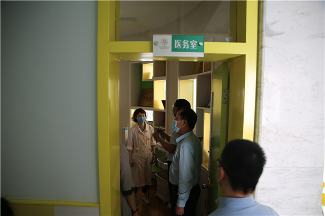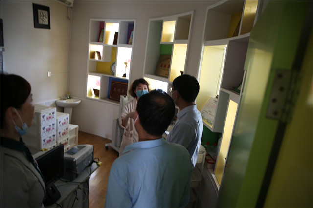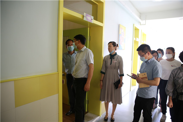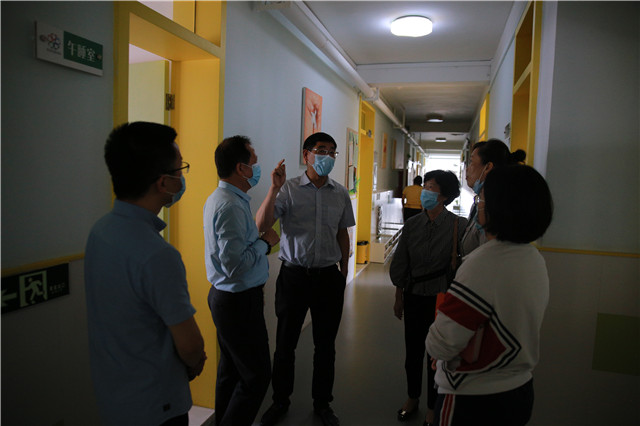 朱副局长等一行领导又仔细查看了留观室、复测室、保健室等,询问了异常体温者的处置等情况;并对幼儿园师生健康状况和校园环境消杀等情况做一一了解。朱副局长对我园精细周全的防疫工作、整洁卫生的校园环境给予了高度的肯定。认为心桥集团的开学防疫工作扎实,有序,物资准备充足,并再三强调要继续严把疫情防控关,落实“三个重视”:一重视防疫工作,继续做好返园后幼儿错峰接送、就餐安排、午睡管理等的各项工作;二重视防控,继续实行封闭式管理,重申“五个一律”,严防校外输入;三重视安全,做好校园安全与心理健康工作。