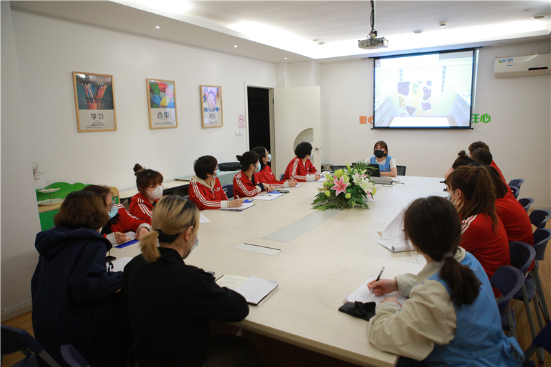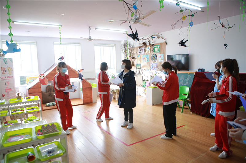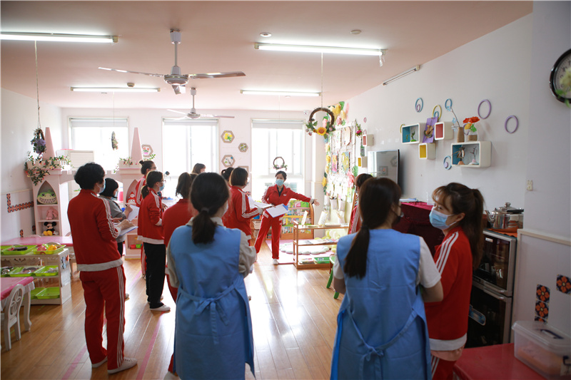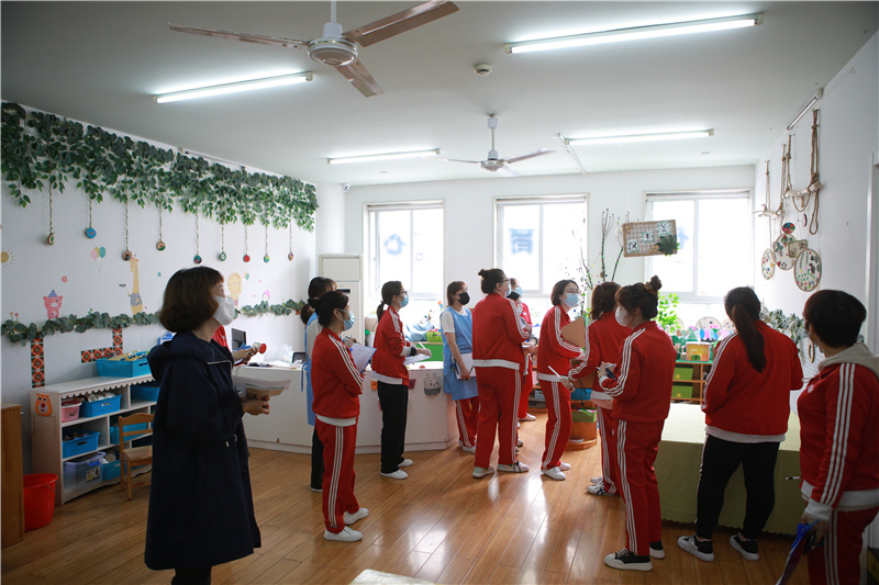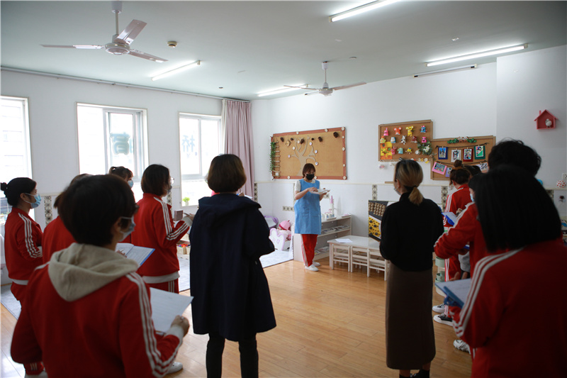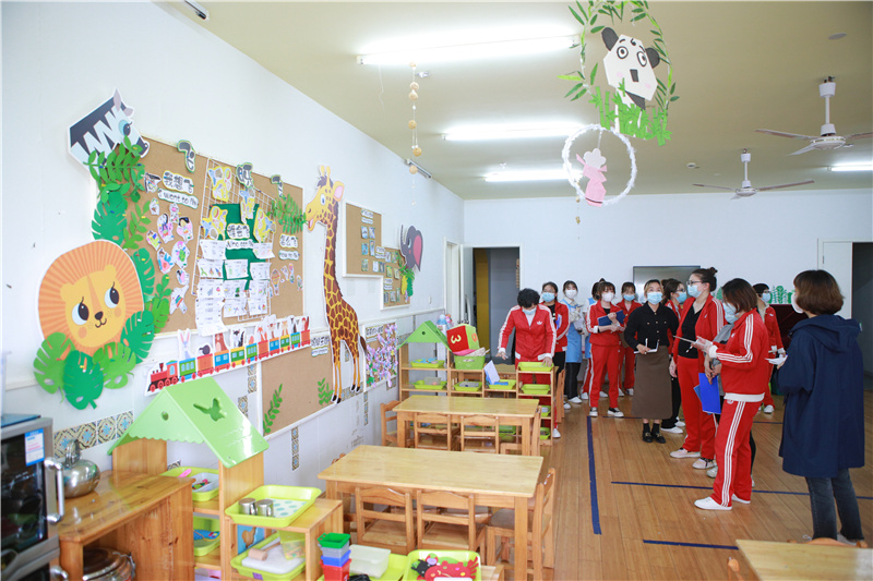 本次评比采取参观与汇报的方式,全体教师先对各个班级环境进行参观,再集中听取汇报,各班老师全面细致地介绍班级文化、班级主题墙布置、区域创设、家园互动、幼儿作品及班级整体布局的设计意图和设计理念。在场的老师们既是评委也是学习者,大家带着欣赏与学习的心态认真听取各班老师的介绍。评比的过程中,大家边思考、边交流,一起分享班级的独特之处,同时把看到的不足及时与该班老师进行交流、分析,寻找更好的解决方法,使各班的环境得到更高的优化与提升。