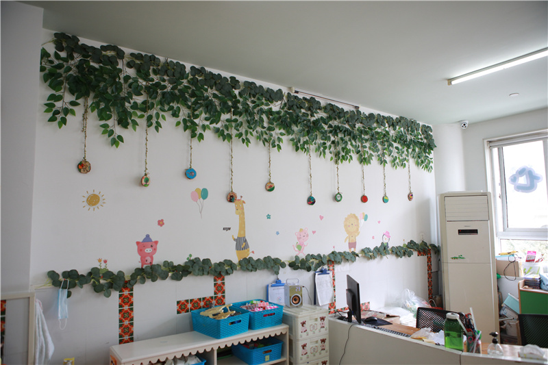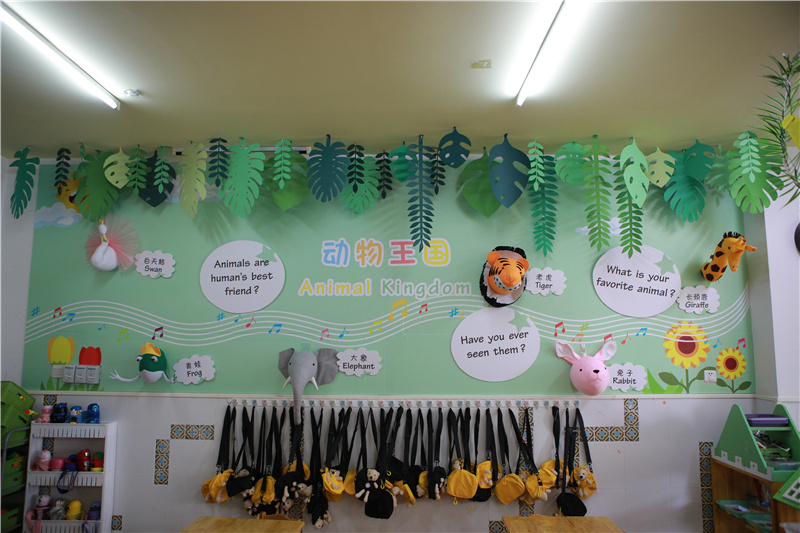在提倡低碳生活的今天,利用废旧物品是爱护环境的最好体现,并且幼儿对大自然也充满了好奇,他们对研究动物、植物、花草树木有着浓厚的兴趣。因此本次环境创设主要采用低碳环保的材料进行布置,如:纸箱、纸巾筒、纸杯、吸管、花生壳以及结合大自然的材料,如:树枝、树叶、石头,野花,小草......将幼儿园整体环境打造成一个清新自然的大森林。老师们充分发挥自己的想象和智慧,每一种材料都散发着的艺术魅力和大自然的气息,赋予创意元素,为幼儿创设了一个操作性强、利用价值高、教育意义颇深的环境,引导幼儿在幼儿园环境中,从小将“环保、热爱大自然”铭记于心。
