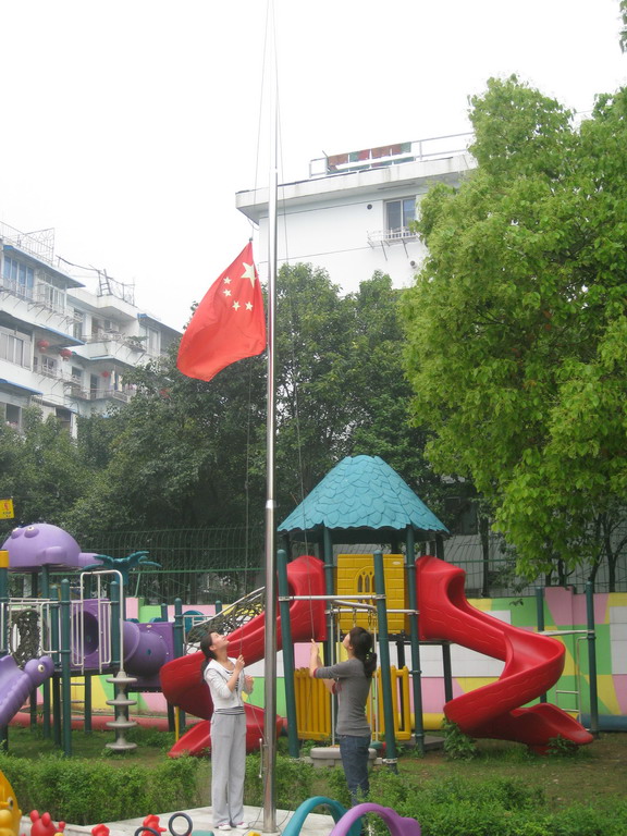 为了悼念“青海玉树大地震”中的遇难同胞,温州市妇联实验幼儿园今晨响应国务院号召,进行降半旗并默哀三分钟的活动,沉痛悼念这次大地震中遇难的同胞。