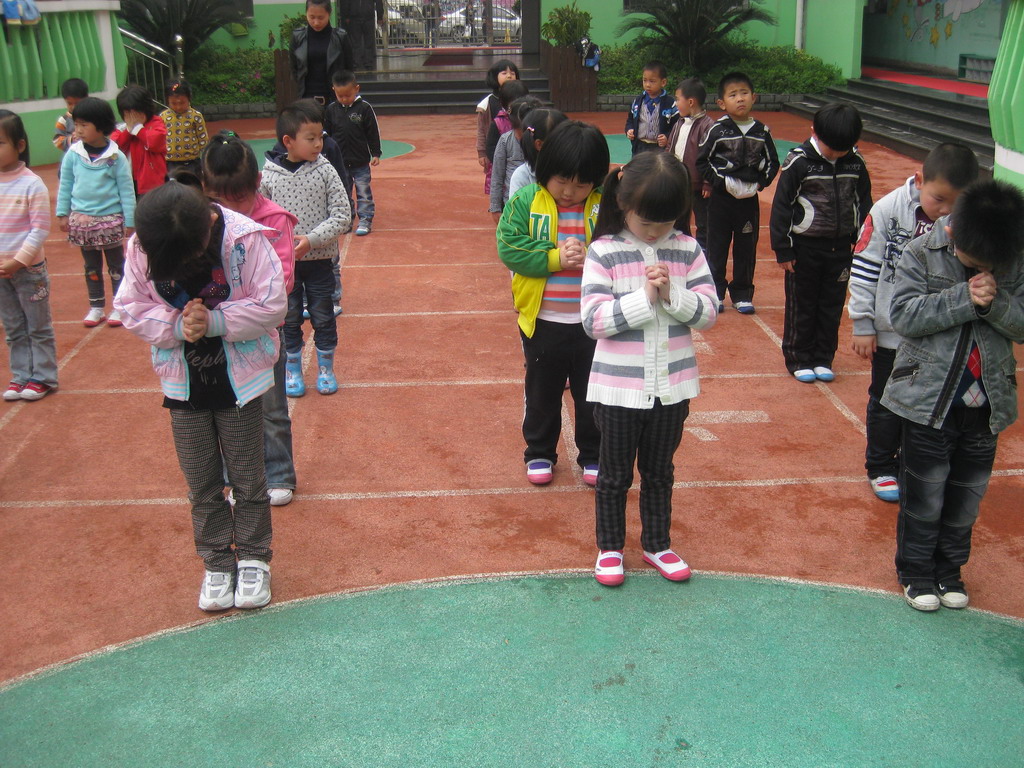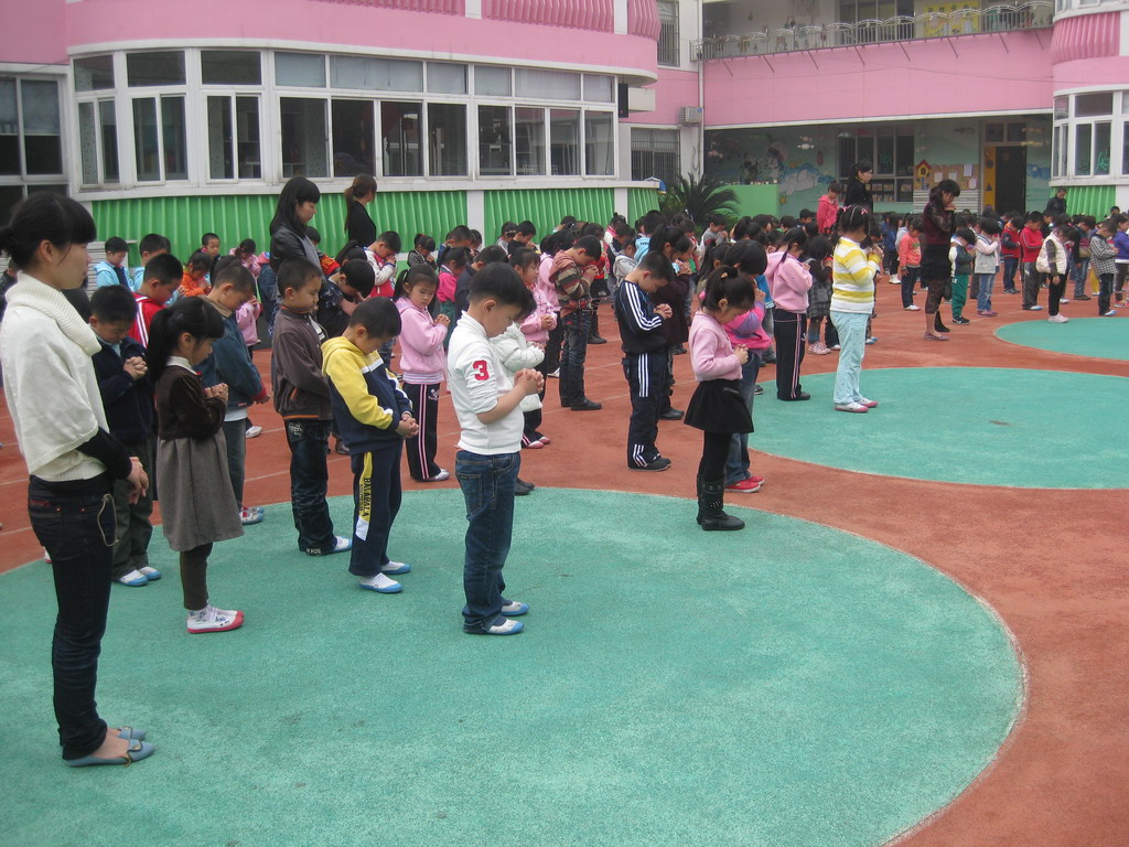 值得欣慰的是,我们的孩子虽然还小,但是他们也懂得为逝去的同胞祈福哀悼。在默哀的三分钟里,默默地低着头。似乎也感受到了大地震中痛失亲人的悲伤。地震无情,人有情,灾区的同胞们你们听到我们的祝福声了吗?虽然,我们不能在废墟边为你们呐喊助威,不能给你们递茶送水。但是,我们的心和你们在一起,加油!