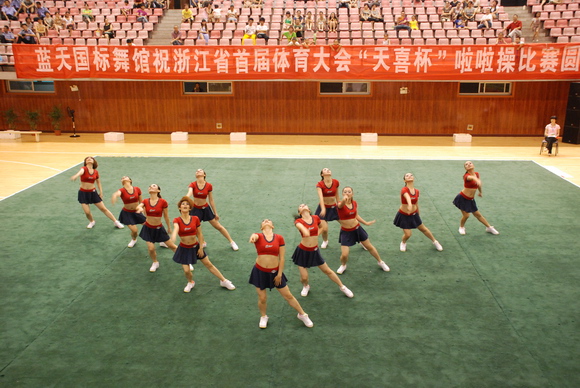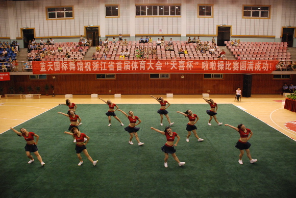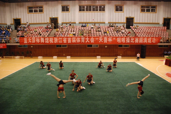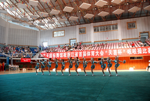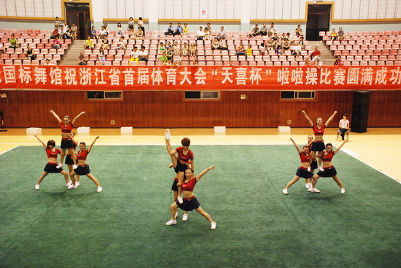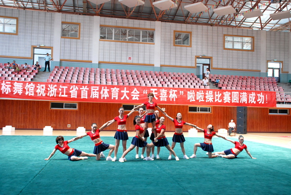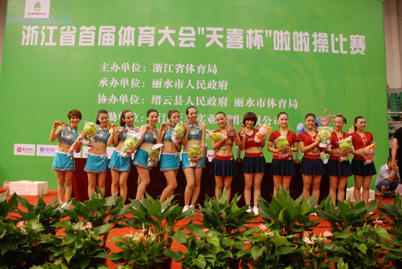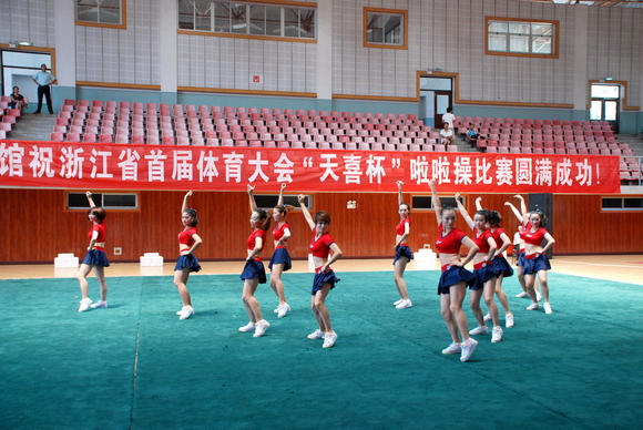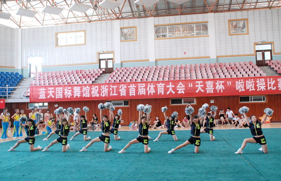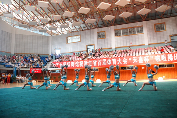 2010年8月17日,浙江省首届体育大会啦啦操比赛在丽水市缙云县举行,来自全省各市的参赛代表队共有十二支,分别参加技巧啦啦操和舞蹈啦啦操两个项目的竞赛。