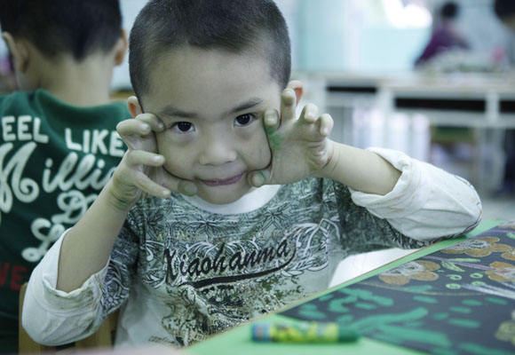 哈哈~脸上也画起来了!