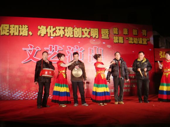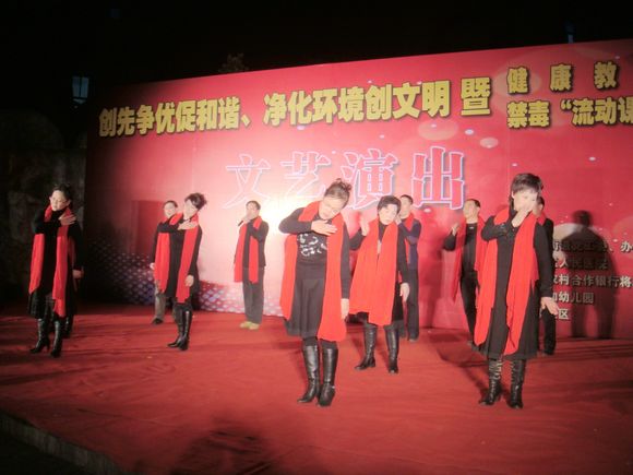 2月22日晚上,繁荣社区的广场上正在上演一台声色缤纷的文艺晚会,社区居民们纷纷走出家门,兴高采烈地聚集在广场上,欣赏这场由繁荣社区承办的文艺节目。