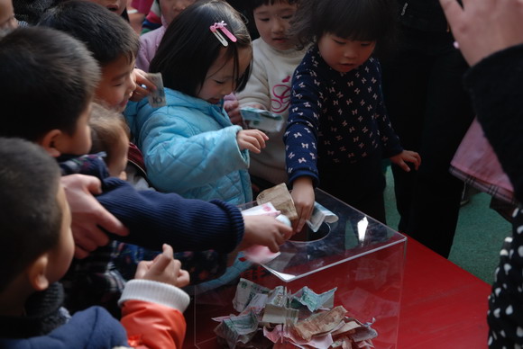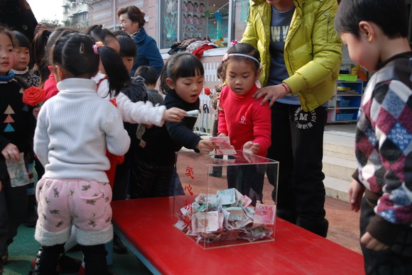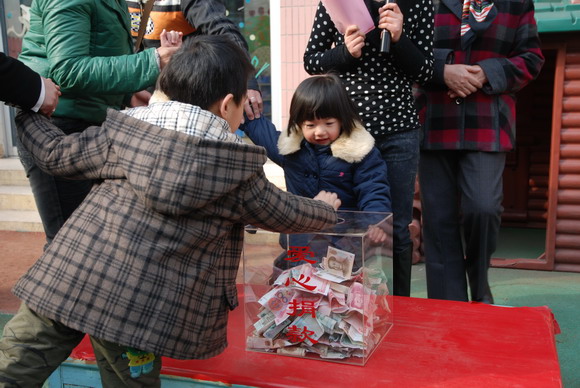 附:本次活动全园师生共计捐款13647元,将为文成县樟台乡幼儿园购买大型幼儿户外玩具,让那里的孩子们有一个快乐的童年。