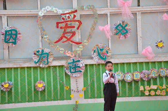 下午,全园师生及部分家长代表欢聚在一起以“爱”为主题,开展系列庆祝活动。旨在通过丰富的活动内容,让孩子们和家长们在这个温情的日子里充分地感受、体验亲子间深深的情、浓浓的爱,并通过活动的开展,让每一位孩子和家长共同参与到环境保护的行动中,倡导低碳生活,为地球妈妈献上一份节日的礼物!