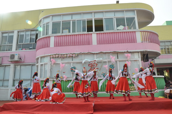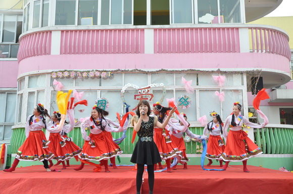 将我们妇联实验幼儿园全体老师对大家美好的祝福,送给在场的每一位大朋友,小朋友,让我们一起祝愿祖国繁荣昌盛,祝福幼儿园的明天会更好,祝福现场的每一个人:“扎西得勒”!