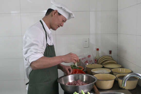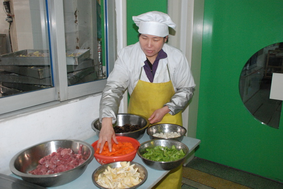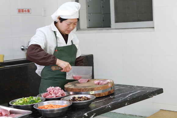 幼儿伙食不仅关系到幼儿的生长发育和健康成长,而且也是幼儿园为家长和孩子们服务的一个窗口。为了进一步提高幼儿伙食在色、香、味和均衡营养等方面上的质量,提高食堂人员的厨艺技能,创新菜式花样,我园于本月22日至25日举行了第四届“厨艺大比武”活动。每位参加比赛的选手,要在规定的时间做出两道菜样。第一道是自选菜,主料由幼儿园统一提供猪肉,其它辅料自己准备。第二道是制作一份具有可操作性又新颖的点心。全体教职员工参与了评选,填写了评分表。