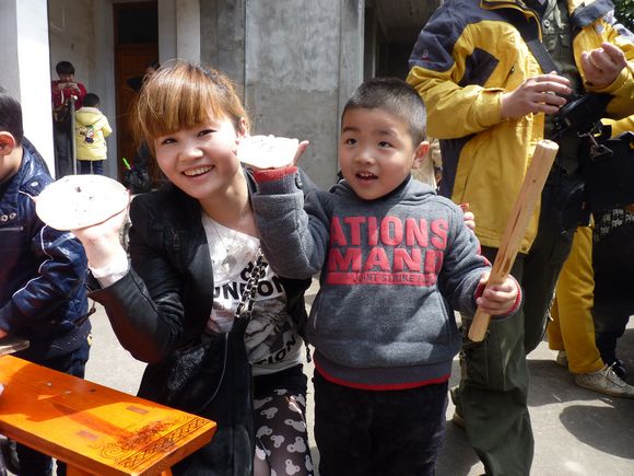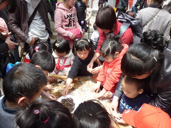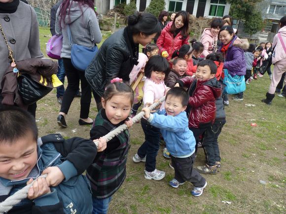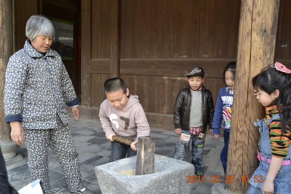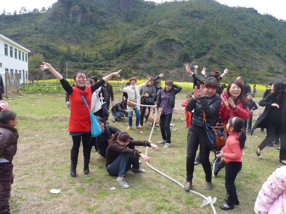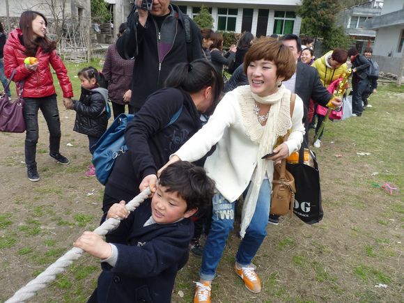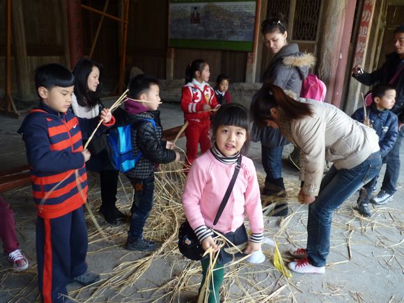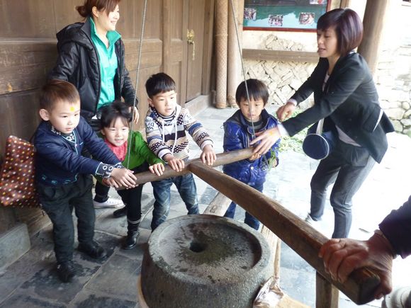 在位于美丽的楠溪江中游的埭头古村,孩子们在爸爸妈妈的陪同下兴致勃勃地在古村里穿梭,欣赏着美丽的花朵,呼吸着大自然带来的清新的气息,感受着温暖的春天带来的愉悦。结束,家长和小朋友们共唱“春天在哪里”,把活动推向了高潮。小朋友们争先恐后地用他们童真的语言描绘着春天的美景,在磨豆腐、编草鞋、做农家麦饼、小溪抓鱼、采摘农家蔬菜、耕地、拔河比赛、吃农家特色菜、参观古村落等亲子游戏中,孩子们和家长密切配合,把活动进行得有声有色,一阵阵的欢笑声响遍了埭头古村。