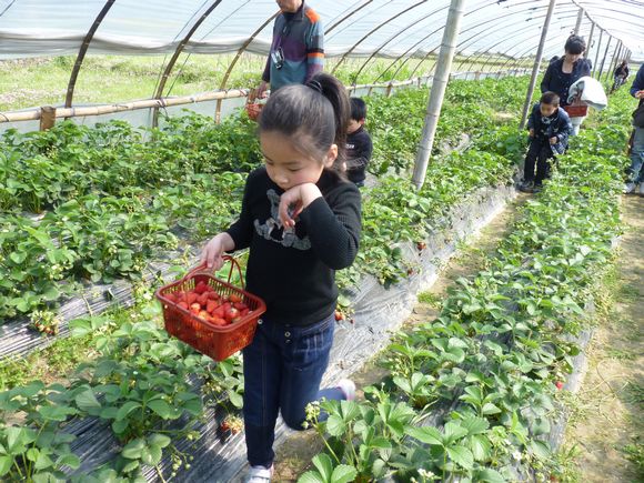 最后家长和孩子们一起来到了草莓基地,手拉手的一起在草莓棚里摘草莓。自己摘的草莓真甜!