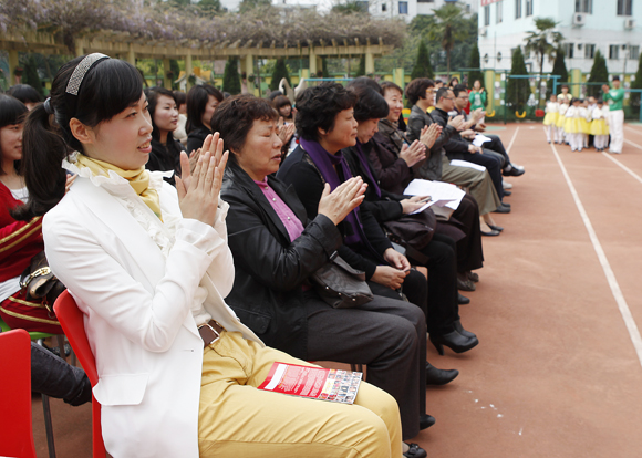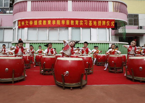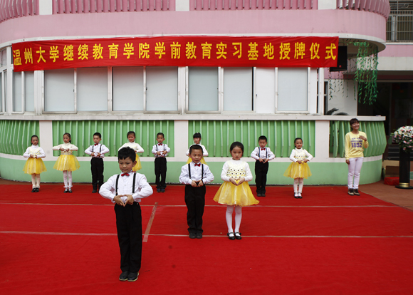 温州市妇联实验幼儿园艺术团的孩子们及部分教师代表精心准备了节目表演,仪式在热情、有效、和谐的氛围中结束!