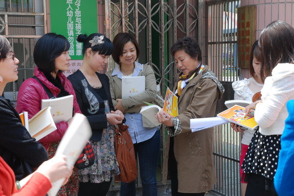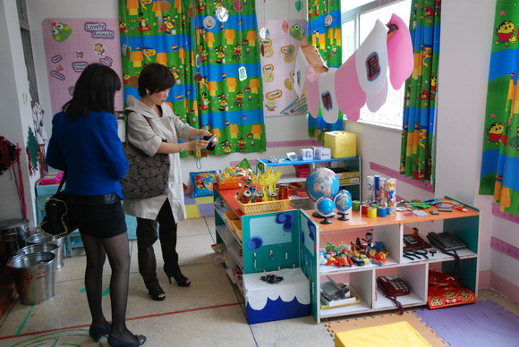 4月12日上午,市一幼园长侯蓓君、林慧老师带领结对园龙湾准办级幼儿园老师一行来我园参观指导。在简短的介绍交流后,老师们参观了幼儿园的园所环境、设施配备、班级的环境创设及区角活动设计等。