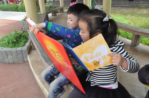在启动仪式上,首先是幼儿园神气的小小升旗手升起了庄严的五星红旗,接着是幼儿园的小朋友代表,家长代表,教师代表相继发言,各自表达了阅读给生活带来的多种好处;代表发言后是我们精彩的诵读节目,大班段全体幼儿以鼓、舞、诵的形式的表演了《千字文》,中班段的孩子和家长温馨的亲子朗诵《金色花》,小班段充满童趣的《诵唐诗》,小小班的宝贝和奶奶们表演的温州童谣《叮叮当》以及教师团队的充满朝气的诗朗诵《书的旋律》。最后,由我们的徐董和在场的所有领导一起点亮了启动球,宣布读书节正式启动。启动仪式后,孩子们还在操场上进行了手制图书的展览交流。