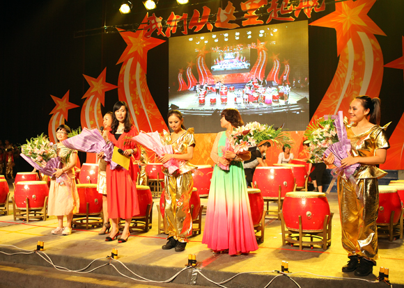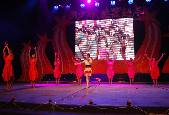 集团领导们正专心致志的看着表演