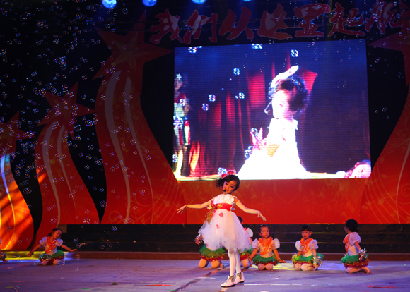 六月二十八日晚上7:00,温州市妇联实验幼儿园在育英大礼堂举行了“我们从这里起航”大班毕业典礼。晚会在制作唯美的孩子们三年幼儿园生活的VCR播放中拉开了序幕,幼儿代表叶轩睿满含热泪“感动你我”的代表讲话,让全场师生动容不已。整场晚会以孩子们在幼儿园的成长变化为线索,共分萌芽——成长——飞翔三个篇章展开。所有节目选材及编排紧紧围绕这三大主题,层层递进、环环相扣!晚会中孩子们出彩的表演、家长们全心的投入、老师们真情的流露,赢得了一次又一次的热烈掌声。 这场晚会不仅见证了孩子们三年来的成长历程,更见证了三年来我们在团队建设中“以过程的亮丽为不懈追求”的理念支撑及行动准则,充分体现了教职工团队的凝聚力、战斗力和浓浓的师生情,给孩子们的幼儿园生活画上了圆满的句号,给我们彼此的心中留下了一段弥足珍贵的回忆。