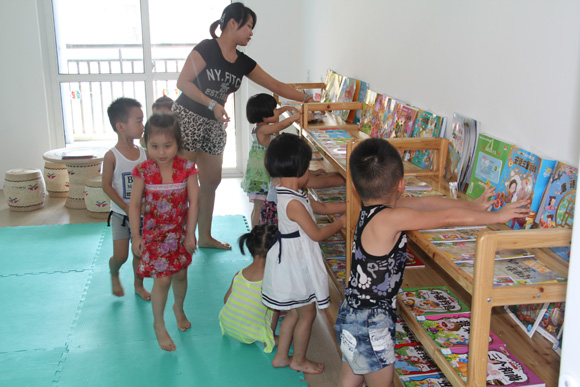 小朋友在图书室里找自己喜欢的书