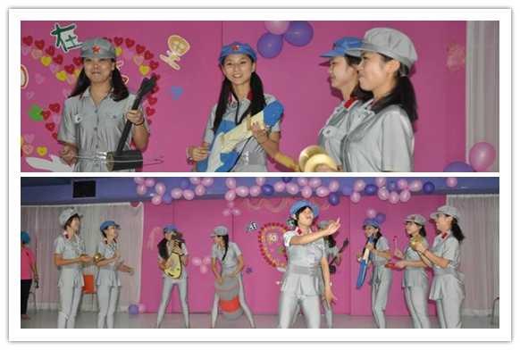 “精彩创意秀”——分别有小小班段和中班段组合,大班段和小班段组合,行政组,后勤组先后展示,即有专业版的,也有模仿秀,更有搞笑版的。门卫老伯精心准备的四幅画,表达了对老师们的敬意。各队的精心策划也体现了我们是一个创新且多才多艺的团体。一些雷人的画面更是一次次把我们活动推向了高潮。我们欢呼着、呐喊着。度过了一个开心且记忆犹新的节日!