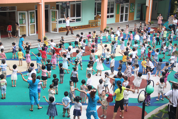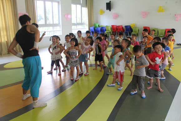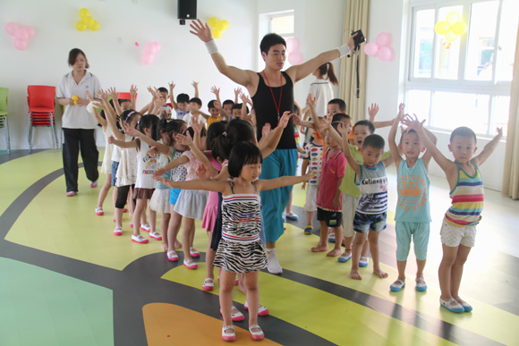 随着音乐声响起,一位又帅气、又可爱的男老师便带着所有的小朋友们跳起动感十足的带动操。这位男老师是谁呢?他就是孩子们最喜爱的熊猫哥哥。幼儿园给各个班都安排了熊猫哥哥的体育活动和带动操,并让他在晨间活动中也融入到孩子们当中去,和孩子们一起玩耍、做游戏。