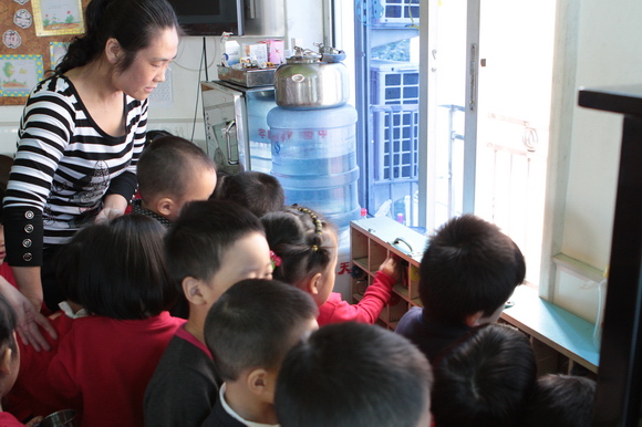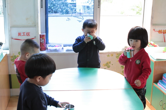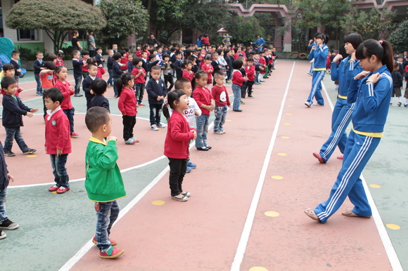 各观摩班级都做了精心的准备,建立了符合自己班的生活常规。如在集体饮水环节时小班老师考虑到幼儿年龄小,自理能力比较弱,教师就利用了在晨间谈话时让保育员给每位孩子准备好温开水,这样便于幼儿取放茶杯饮水,同时也减少了安全隐患和不必要的隐性时间浪费。而中、大班幼儿自理能力逐步的加强,老师分组让孩子找个“小脚印”,站在“小脚印”上接水避免了包办代替,逐步养成良好的行为习惯。孩子们的早操分年段进行。首先是大班的早操:整齐的队伍,神气的表演,似乎比小、中年段的孩子成熟许多,接着是中班整齐的队列,饱满的精神,还有简单的幼儿互动,使整个操活动显得十分活跃、欢快;最后上场是小班段的孩子,在优美的音乐旋律声中,宝宝们认真地进行儿歌操表演。2个小时的户外活动教师进行了科学的分配,将幼儿分成两批玩运动器械和体育游戏,活动中教师控制好幼儿的运动量进行动静交替,将幼儿的活动量和活动强度逐渐的增加。而教学现场,孩子们在教师循循善诱的引导下,思维活跃,积极表达,教师教法新颖,较好的师生互动使得课堂气氛活跃,孩子们天真可爱的笑声溢满教室。教师们精心准备各具特色的展示课给听课教师留下了深刻印象。上午整个活动的流程比较顺畅,环节衔接紧凑,无等待的现象,班级所开展的活动紧紧结合幼儿学习特点和身心发展规律,充分体现了幼儿是学习活动的主人,处处显示出幼儿园常规管理常态化、一日活动精致化。