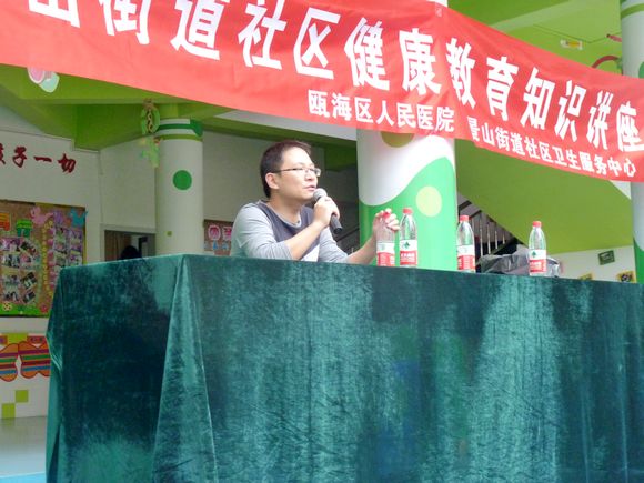 10月21日下午,幼儿园邀请瓯海人民医院院长徐斌对全体家长进行了幼儿健康教育知识讲座。徐院长首先分析了目前的传染病预防情况,然后具体对手口足的发生原因、症状、特征、传播途径以及预防措施对家长进行了一个科学的指导,帮助家长解除了因“手口足病”引起的一些疑惑,最后对几种常见的传染病进行了介绍。