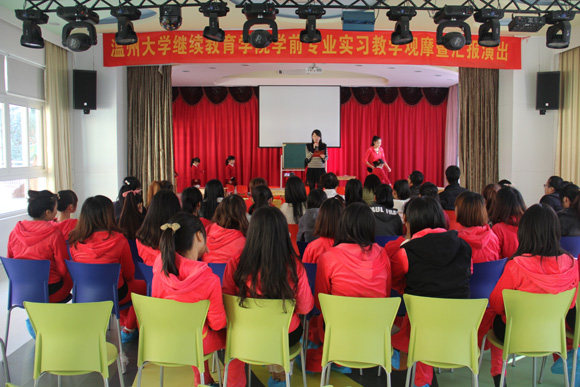 经过一个月在开发区心桥幼儿园的实习,温州大学成人继续教育学院的26名实习生们终于要结束自己的实习生活了。11月25日上午幼儿园为实习生们举行了“实习生汇报课展示暨欢送会”。我园领导、指导老师、温州大学继续教育学院的领导、实习生、部分在校学生参加了此次活动。