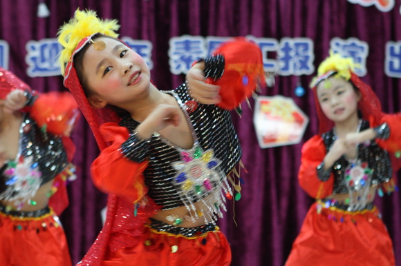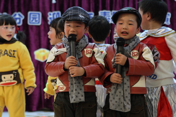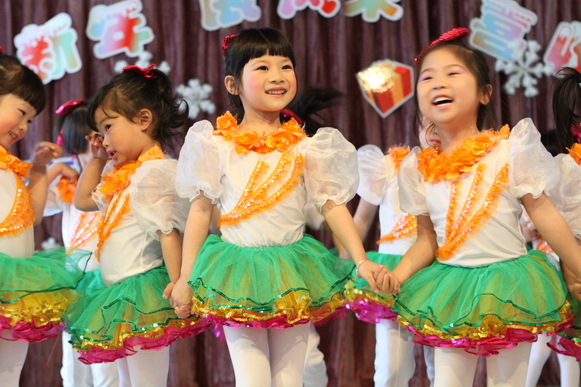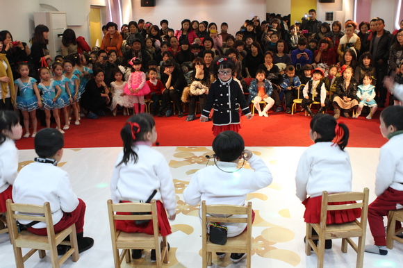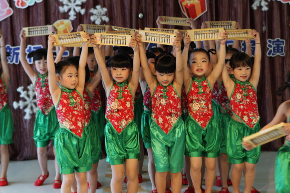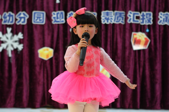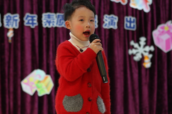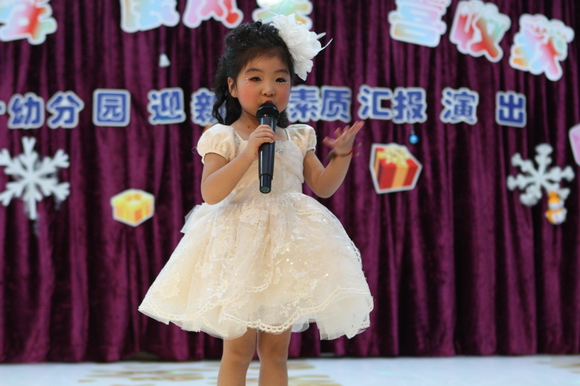 我们的演出分为上下午两场:上午场9:00在总园多功能厅进行,下午场2:30在分园四楼多功能厅举行,节目形式丰富多彩,有热力四射的舞蹈、耐人寻味的英语歌曲串烧、标准有力度的绕口令表演、生动活泼的英语情景剧、还有精彩的英语组合秀等等。各素质提高班的小学员们人人参与、人人上台,小朋友们在舞台表现的大胆、自信、敢唱、敢跳、敢演,充分显示了我们小学员们的学习素质,台下的家长观众们在观看节目的时候乐的合不拢嘴,大家的掌声一浪高过一浪,将节日的热情与喜庆推向了高潮。