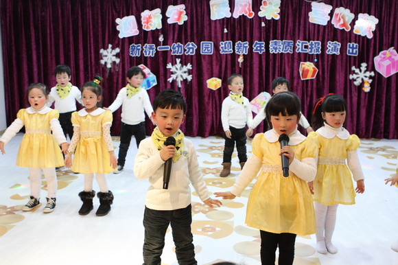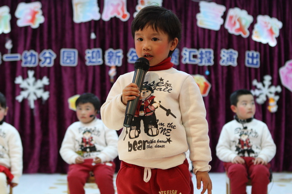 新年的钟声即将敲响,时光老人为我们掀开了新的乐章,我们即将告别丰收的2011年,迎来充满希望的2012年,在这个幸福的时刻,我们新桥一幼的小朋友欢聚一堂喜迎新年,并展示自己这个学期所学到的本领。