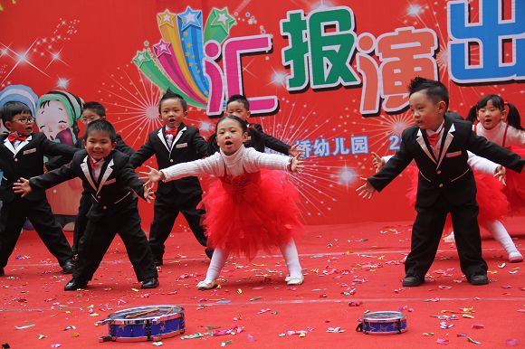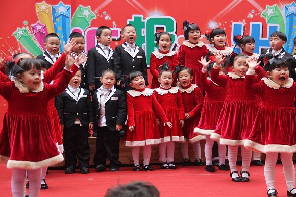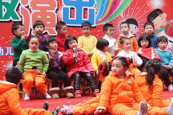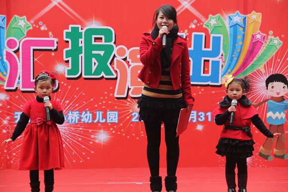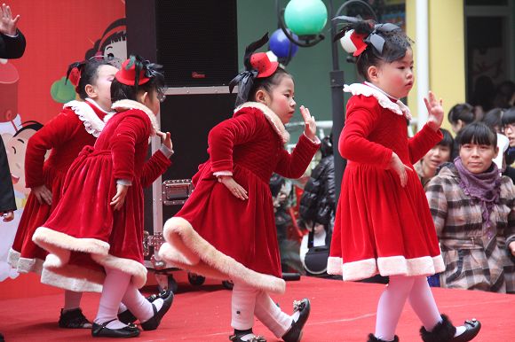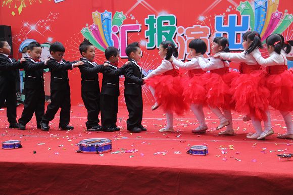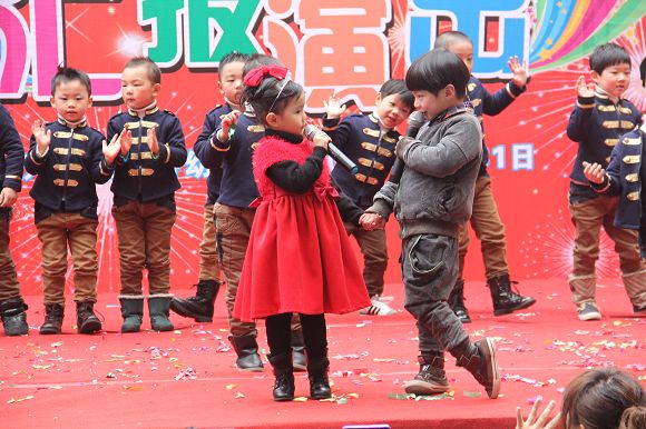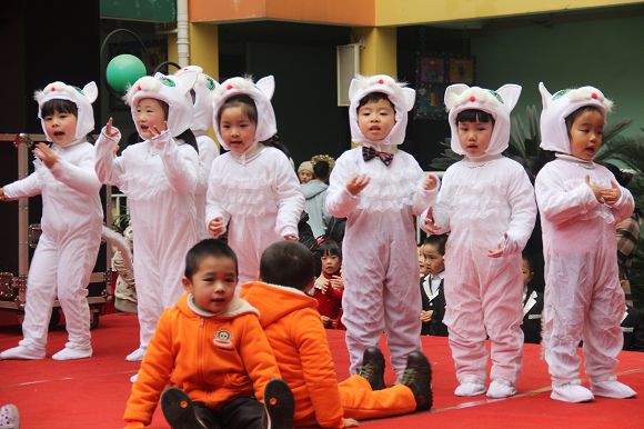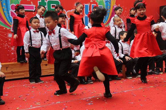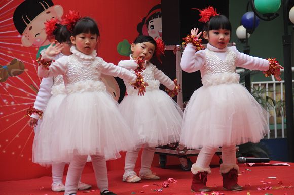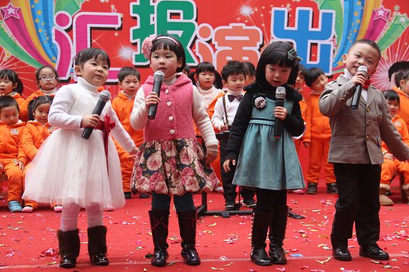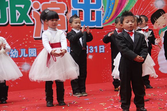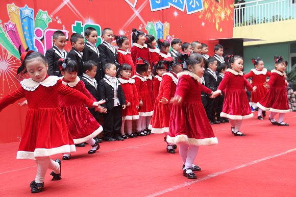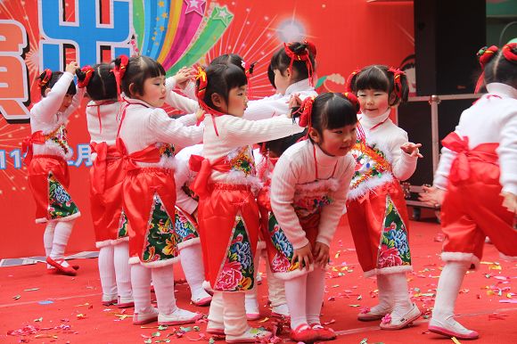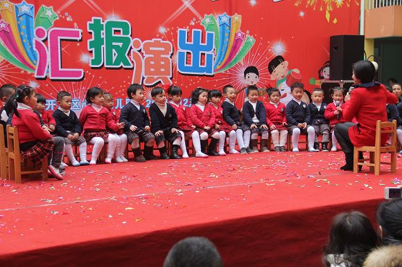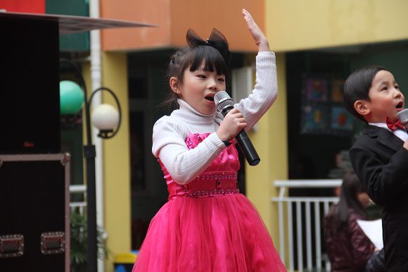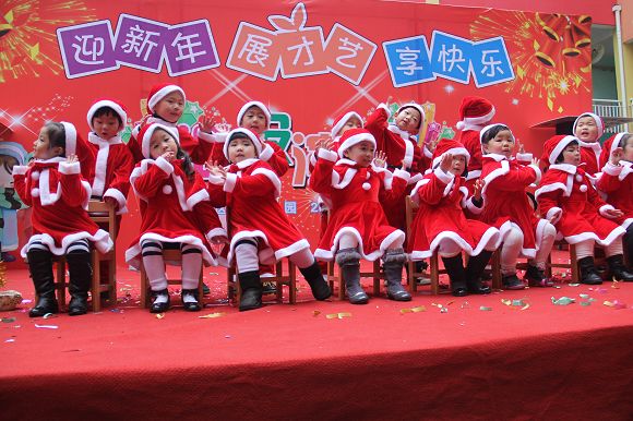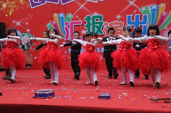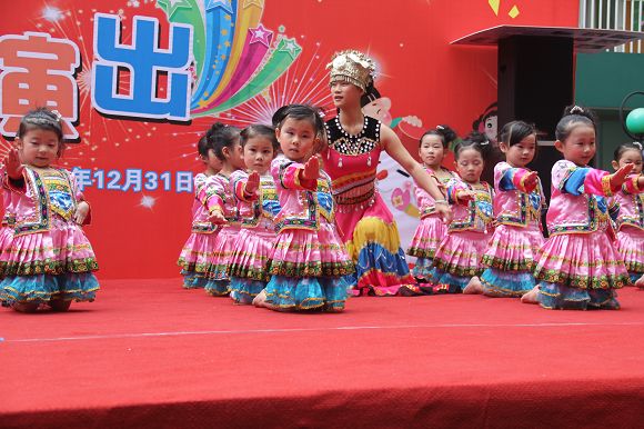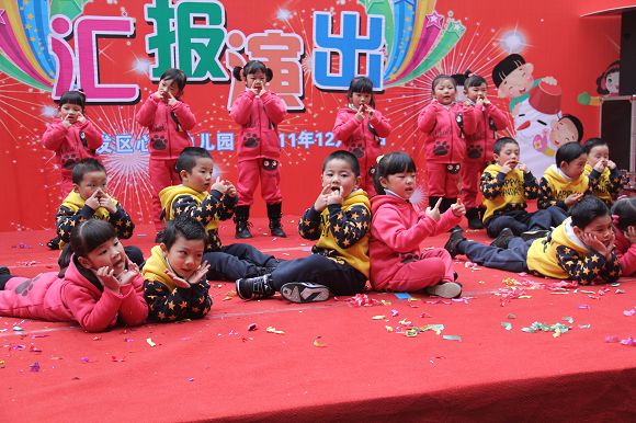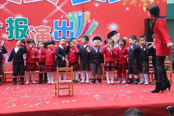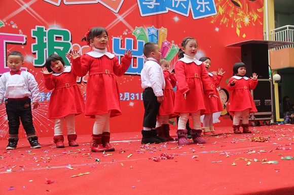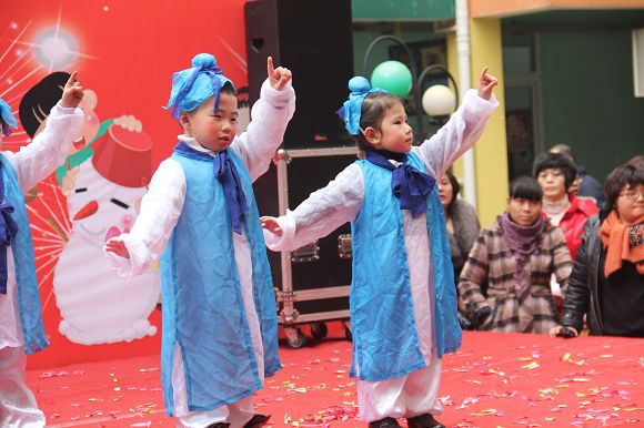 为了给孩子们营造一个热闹的迎新氛围,我们专门在一楼操场搭建了一个大型的舞台,给孩子更大的展示场地。2011年12月31号上午9:00演出准时开始,节目形式丰富多彩,有热力四射的舞蹈、有悦耳动听的歌声,有俏皮可人的主持。更有耐人寻味的英语歌曲串烧、生动活泼的英语情景剧、精彩的英语组合秀等等。本次活动保证了让孩子们人人参加,个个上台的演出原则。孩子们在舞台上表现得大胆、自信、敢唱、敢跳、敢演!赢得了在场所有家长的掌声和好评!