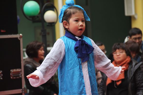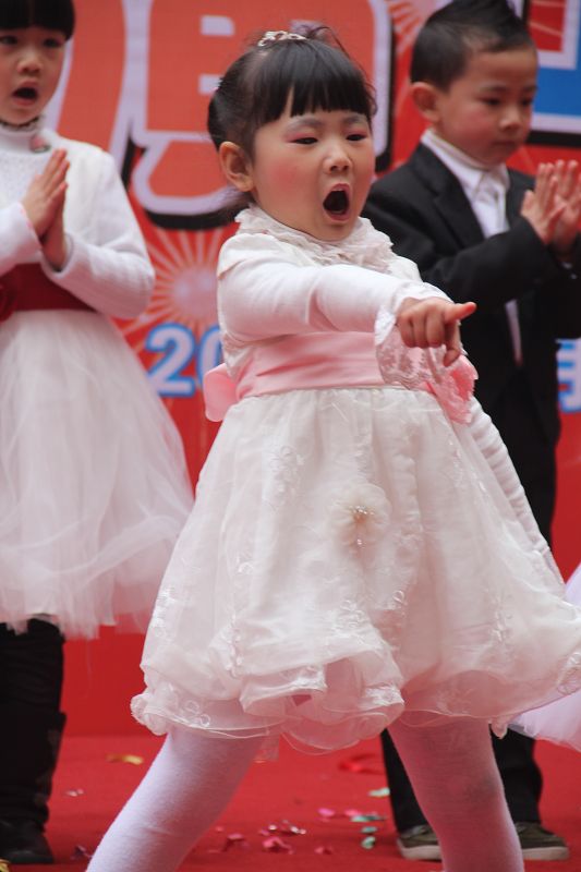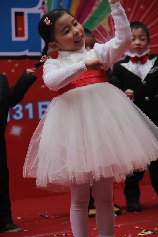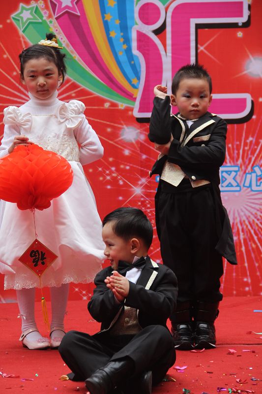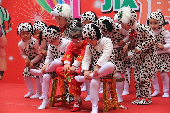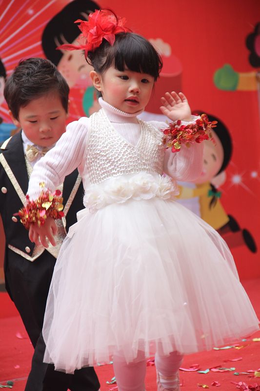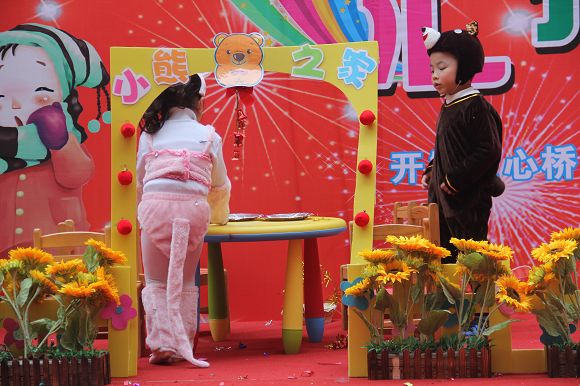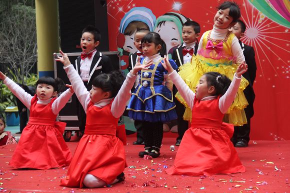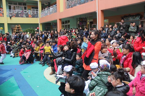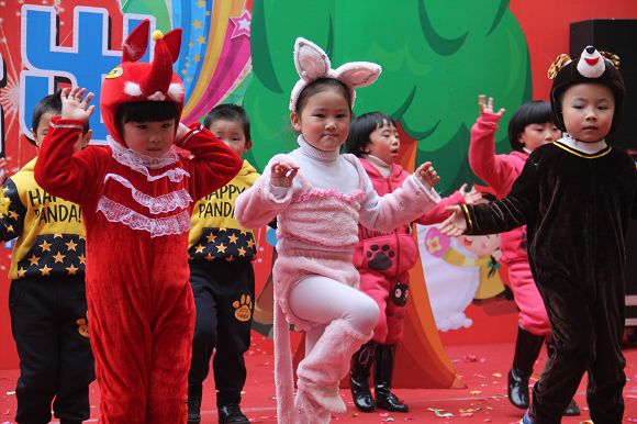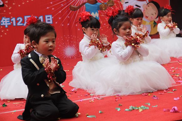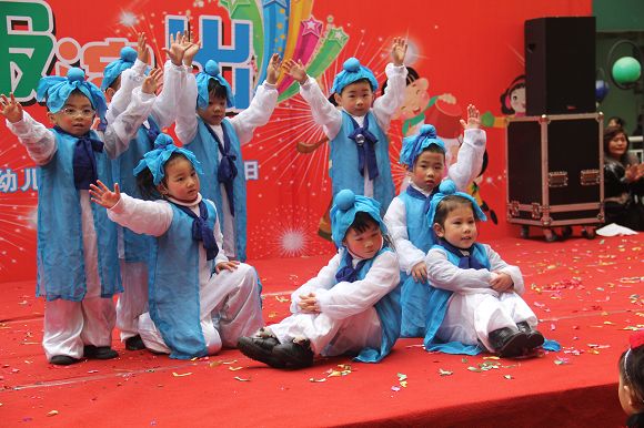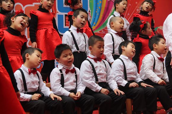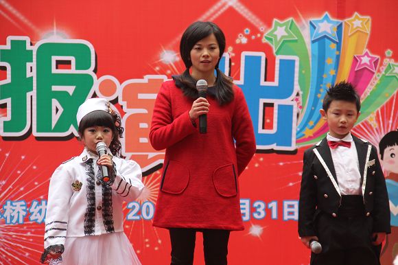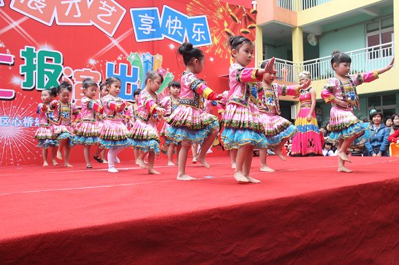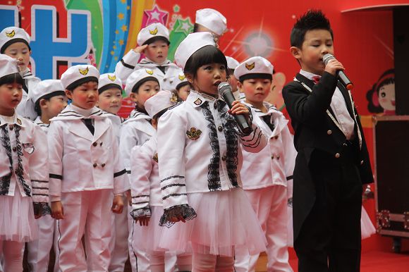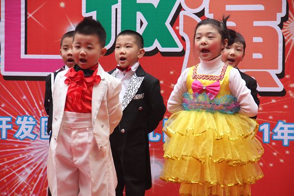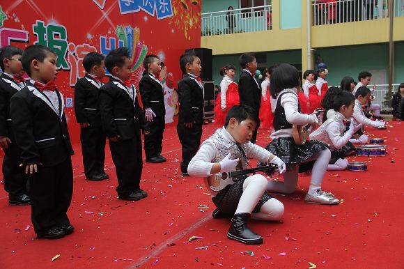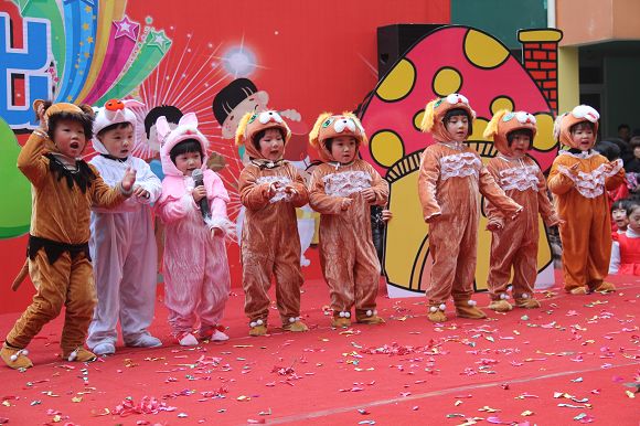 为了给孩子们营造一个热闹的迎新氛围,我们专门在一楼操场搭建了一个大型的舞台,给孩子更大的展示场地。2011年12月31号上午9:00演出准时开始,节目形式丰富多彩,有热力四射的舞蹈、有悦耳动听的歌声,有俏皮可人的主持。更有耐人寻味的英语歌曲串烧、生动活泼的英语情景剧、精彩的英语组合秀等等。本次活动保证了让孩子们人人参加,个个上台的演出原则。孩子们在舞台上表现得大胆、自信、敢唱、敢跳、敢演!赢得了在场所有家长的掌声和好评!