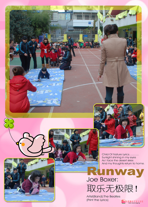 本次运动会是对小朋友体能及本年龄段应该掌握的运动技能的一次验收,通过本次运动会更加激发了幼儿的运动热情和班级集体荣誉感,为2012年的开了一个喜庆的头,同时也为学期活动划上一个圆满的句号。