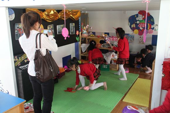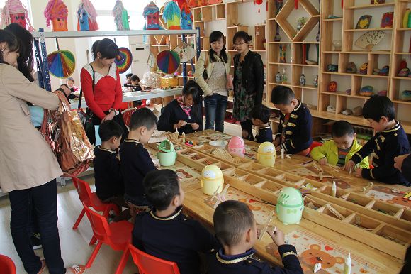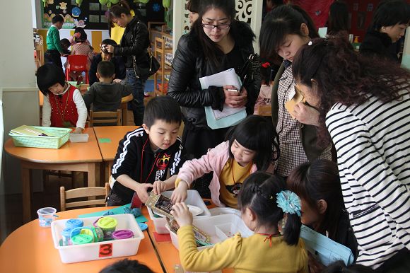 区域活动是幼儿园课程的重要组成部分,在学前教育领域中占据重要的地位,区域活动的开展可以充分的发掘幼儿的个性,促进幼儿去探索发现,弘扬他们的自主性和独立性,是一个非常有意义的活动。为了更好地让教师了解区域活动,促进幼儿更好的发展,2012年4月6日早上开发区各所幼儿园及其他园的园长和部分教师共50余人相聚开发区心桥幼儿园共同研讨观摩幼儿园区域活动的开展。本次活动共分三个环节:首先由开发区心桥幼儿园分管教学的蔡老师就本园如何开展区域活动做整体的介绍,其次各幼儿园园长及教师观摩了园内的美工区、建筑区、阅读区等各个大区域,最后大家观摩了不同年龄段班级区域活动的开展。