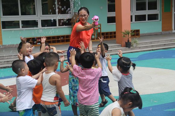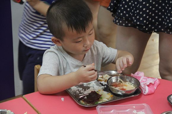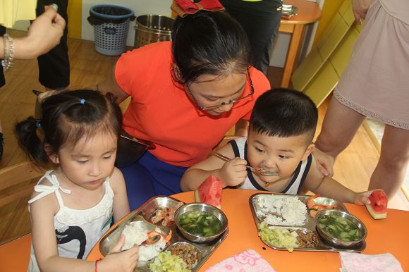 7月5日上午,小小班和小班的新生在各位家长的陪同下来到了开发区心桥幼儿园。教室里老师让每位小朋友作自我介绍,还和小朋友、家长一起做游戏,拉近彼此间的距离,更快地和幼儿及家长建立良好的关系。有家长的陪伴,孩子们都很高兴,还在操场上和熊猫哥哥一起跳带动操。到了中午吃饭的时候,不少小朋友都会自己动手吃饭,真是棒极了!