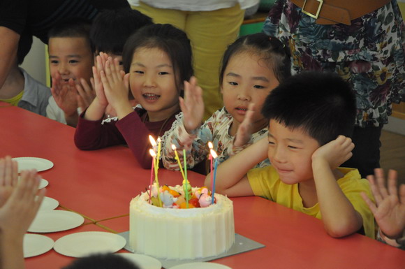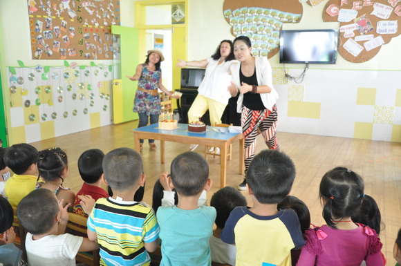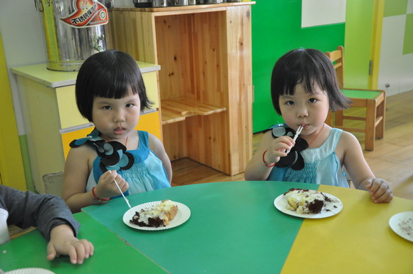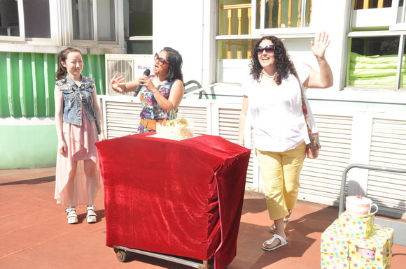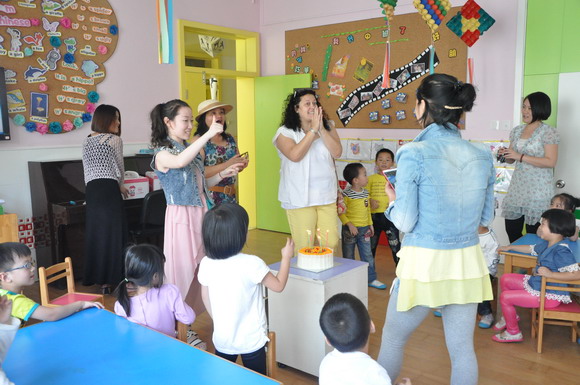 外教:Pauline、Marya 为小朋友送上生日蛋糕并并祝小朋友们节日快乐!