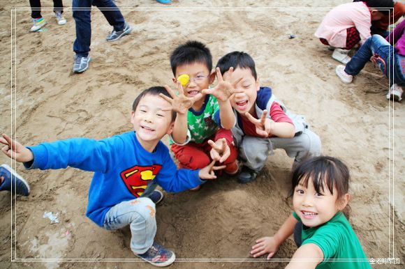 摸着凸起小肚的小朋友们在领队的带领下,一路唱着歌,一路蹦跳着,前往田地采摘(挖番薯),小朋友们不仅认识了番薯的植物特征和营养价值,并且自己亲自动手来完成采摘的过程。他们拔起番薯藤看到那一串串的番薯时,发出来自心底的那种叫喊,“好多,好大”。各个争着挖最大的,让妈妈们给他们留下欢快的靓影。