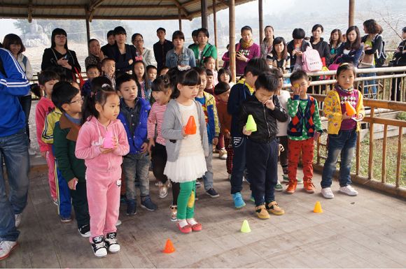 最后,是孩子们喜欢的拓展园游戏,钻网洞、攀岩、滑竹梯。在运动中结束了一天的行程。虽然只有短暂的一天时间,但是孩子们玩了游戏,爬了青山,吃了豆花,还带回了自己挖的番薯,可谓满载而归。