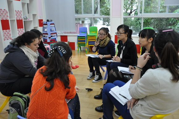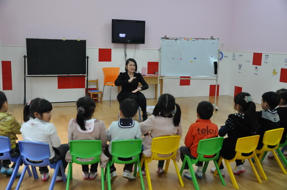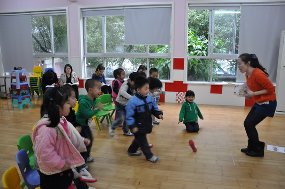 为了进一步提升英语教师们的教学能力,展示教师风采,温州市妇联实验幼儿园于11月9日举行了为期一天的英语教学展示活动,此活动共有5位英语教师参加,其亮点为:英语教师们在突破自我的同时,大胆创新,在活动中运用了单词,句型和歌曲整合这一新理念,使得整个教学活动饱满而有新意!每个活动后还有两位外教老师及老师之间的点评和反思,老师们在相互之间思想上的碰撞,悟出了新的教学思想。相信通过这样的教学活动必能为我们幼儿园的英语教学质量奠定新的基础,从而使英语教学水平更上一层楼!