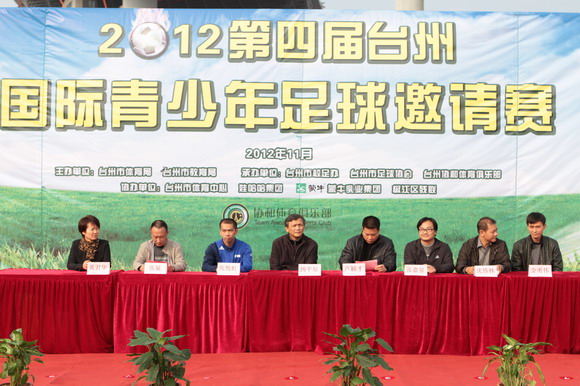 11月24日上午,由台州市教育局、台州市体育局主办,由台州市校园足球办公室、台州市足球协会、台州市协和体育俱乐部承办的2012第四届台州国际青少年足球邀请赛在台州市体育中心拉开帷幕。出席本届邀请赛开幕式的领导嘉宾有:浙江省体育局群体处处长扬平原先生;台州市体育局党组书记、副局长卢颖才先生;亚足联A级教练员、全国校园足球讲师张悦虹先生;北京体育大学硕士、江西农业大学副教授金勇伟先生;身体教育学创始人、福建华南实验小学张嘉泉先生;浙江省校园足球办公室副主任刘维宏先生;台州市体育局群体处处长沈伟林先生;台州市足球协会常务副主席张猛先生;台州市协和体育俱乐部总经理黄君华。参赛队伍是来自上海德国国际学校、福建厦门人民小学、福建福州华南实验小学、浙江绿城足球等学校和俱乐部的运动员。