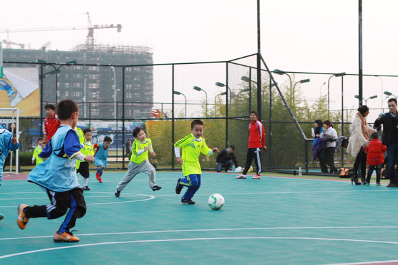 新桥一幼的小朋友是本次活动中年龄最小的队员,与协和足球俱乐部的队员们展开有趣而又激烈的友谊赛,体会足球带来的快乐。