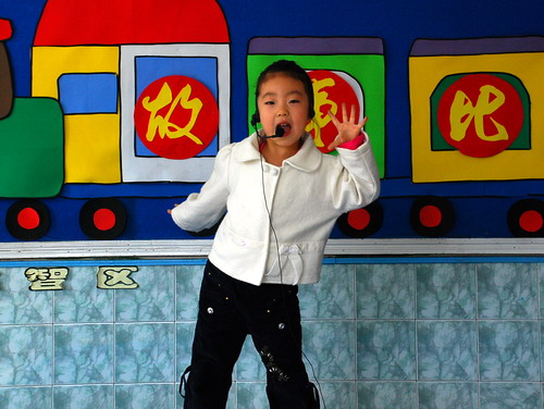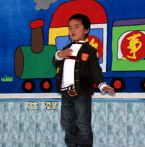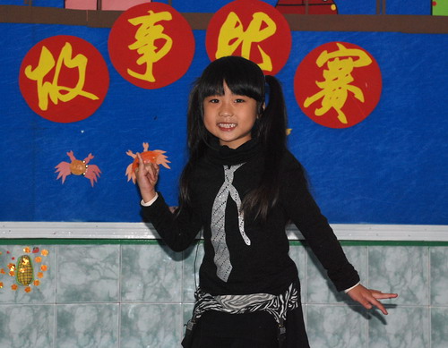 参加全园性的"幼儿故事大王"比赛.