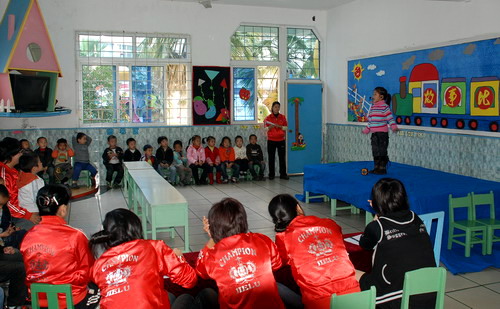 于上午和下午举行了幼儿讲故事比赛,各班参