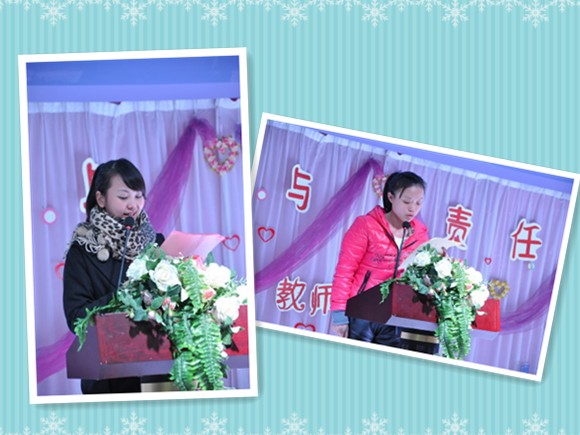 2012年12月20日晚,在温州市妇联实验幼儿园多功能厅,举行了以“爱与责任”为主题的师德演讲比赛。与其说是演讲比赛倒不如说是一次心与心的交流和碰撞,参加演讲的29位新老教师,将自己从业以来的故事、体会和心情,尽情向在座的嘉宾(家长评委)以及老师吐露,发自内心的共鸣,一度让大家所感动。最后家长评委代表讲话,更是整场演讲的升华,她不仅讲述了自己父亲一心扑在教师行业的故事,更表达了在场家长评委的心声,对我们教师这份职业给予了极大地肯定与支持,为场下的老师们树立了更大的信心和决心。 最后所有参加演讲的老师均获得奖项及奖品。老师们从家长手中接过的不仅仅是一份份奖励,更是收到了她们的一份深情的鼓励和信任。通过这次演讲比赛,老师们收获的更是一次对幼教工作的深刻感悟;通过对教育真正内涵的诠释,老师们再一次体验到了做一名教师的尊严感和成功感。