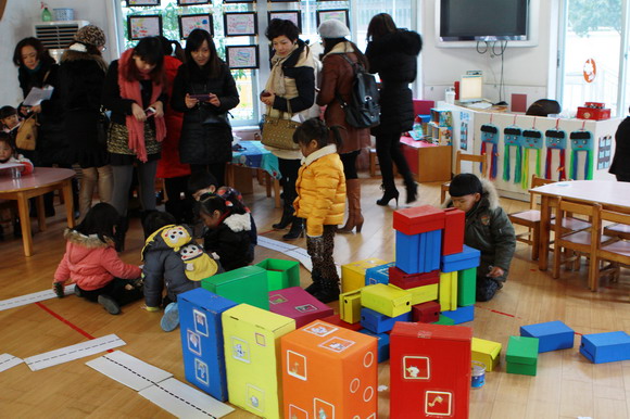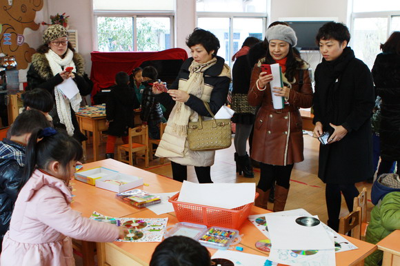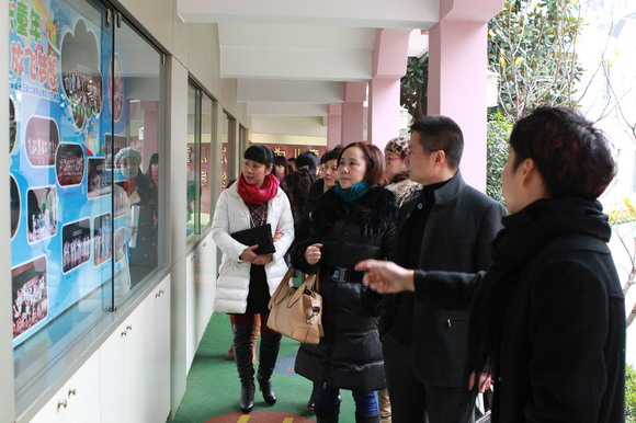 幼儿园环境创设是幼儿园课程的一部分,是幼儿教育的重要资源,而区角活动是幼儿园教育中的重要组成部分,区角环境创设体现了教师的教育理念,影响着幼儿的自主活动,对幼儿的身心发展有着举足轻重的作用。为进一步诠释 “环境育人”的理念。2013年1月9日上午,在区教育局领导潘时辉科长的带领下评委组一行7人,来我园进行区域环境创设的检查。评委组人员首先听取了环境创设汇报材料,之后饶有兴趣观看了幼儿园各班级区角建设,大家一边观看,一边不停的用相机拍摄孩子们的作品和教师们别具匠心的布置。通过本次评比活动不仅展示了各班教师的聪明智慧,更进一步丰富了幼儿园的区域活动内容。让教师们在创设和观摩的过程中体会到,营造教育环境要更加注重突显特色,更加注重可操作性,有效地把区域环境创设作为一种教育理念和课程模式的构建要素,从不同侧面促进幼儿健康和谐发展。