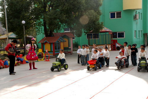 今天,电视台的"幼幼party"摄制组一行人员来我园录制节目.