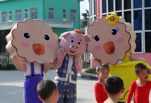 由老师扮演的三个可爱的卡通人物